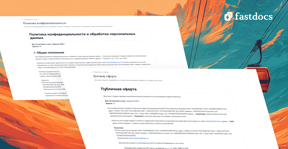 Гарантируете актуальность: Документы соответствуют требованиям 2026 года, 152-ФЗ, GDPR, CCPA.
